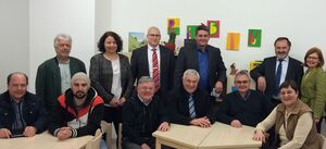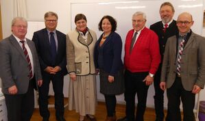 Foto: Vorsitzender des Bundeswahlkreises Harald Unfried (Mitte) mit den Stellvertretern Ruth Müller, MdL (2. V. l.), Horst Kubatschka, MdB a. D. (5. V. l.) und Johanna Werner-Muggendorfer, MdL (3. V.r.)